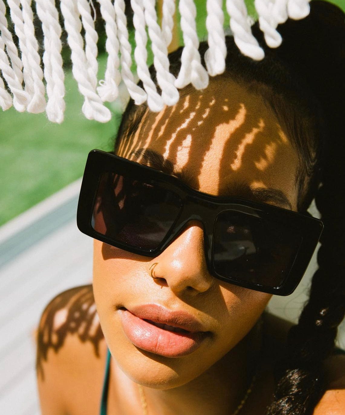 - Presented in a white rhodin. x BROOKE vegan fold sunglass case.